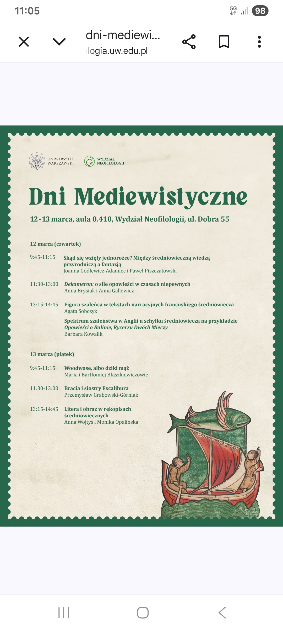 poniżej w pliku szczegółowe informacje o dniach mediewistycznych odbywających się: 12-13 marca 2026 r., aula 0.410,